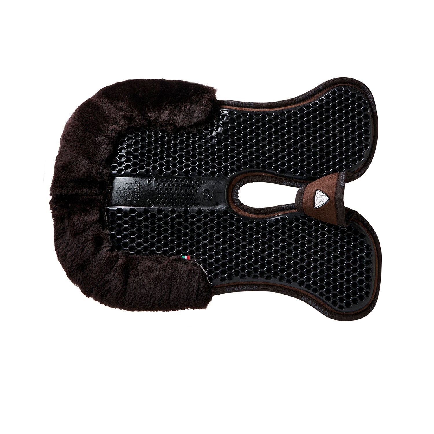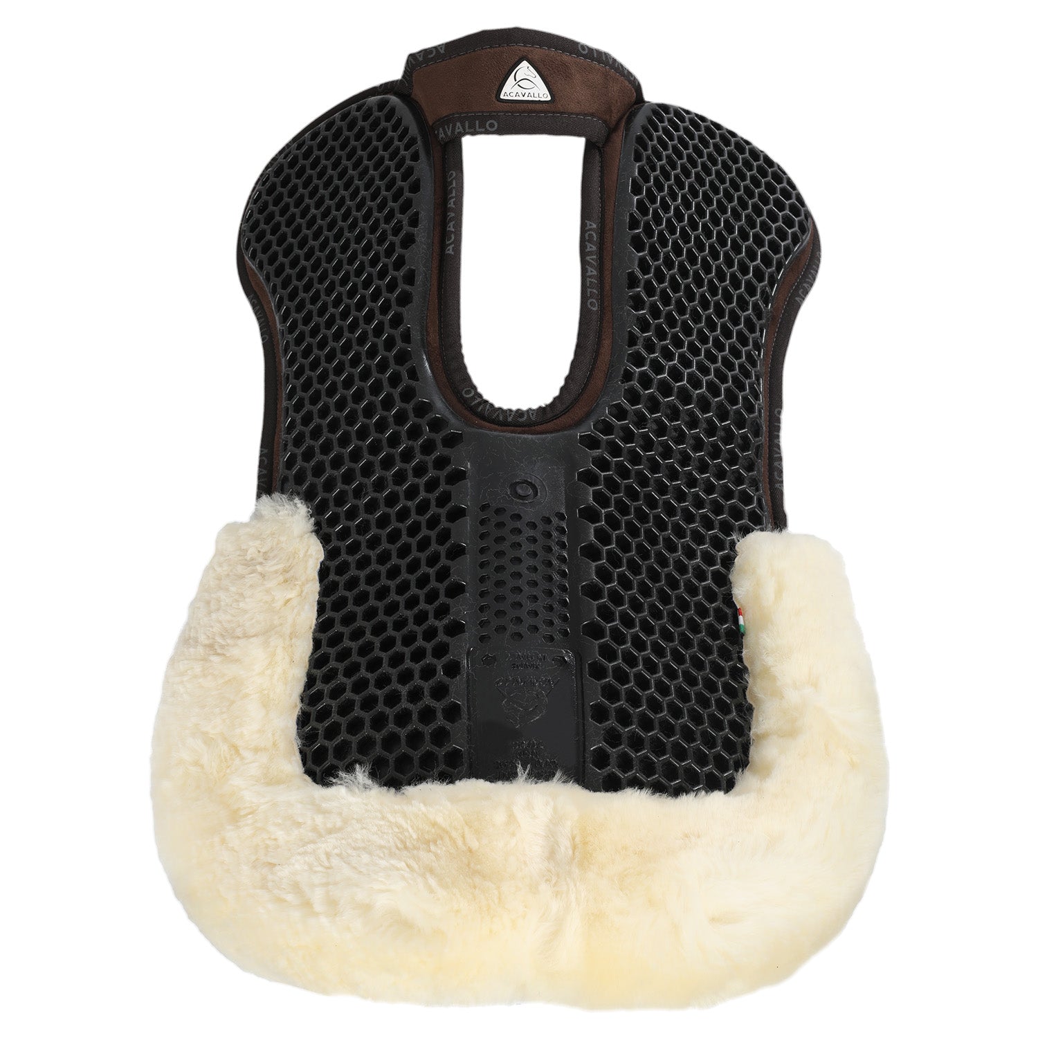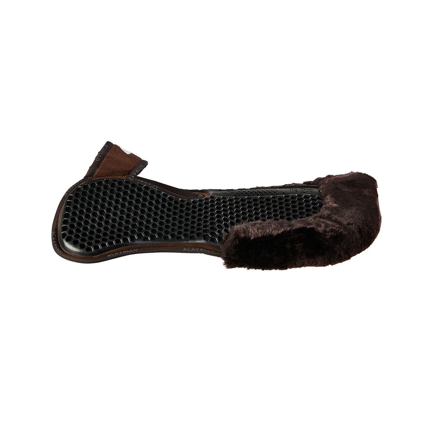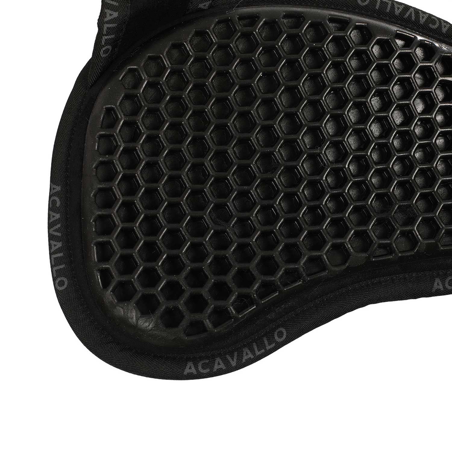 It combines the non-slip, shock-absorbing and breathable properties of the Acavallo® Hexagonal gel with a memory foam lining in the lower part and a sheepskin rear edge.