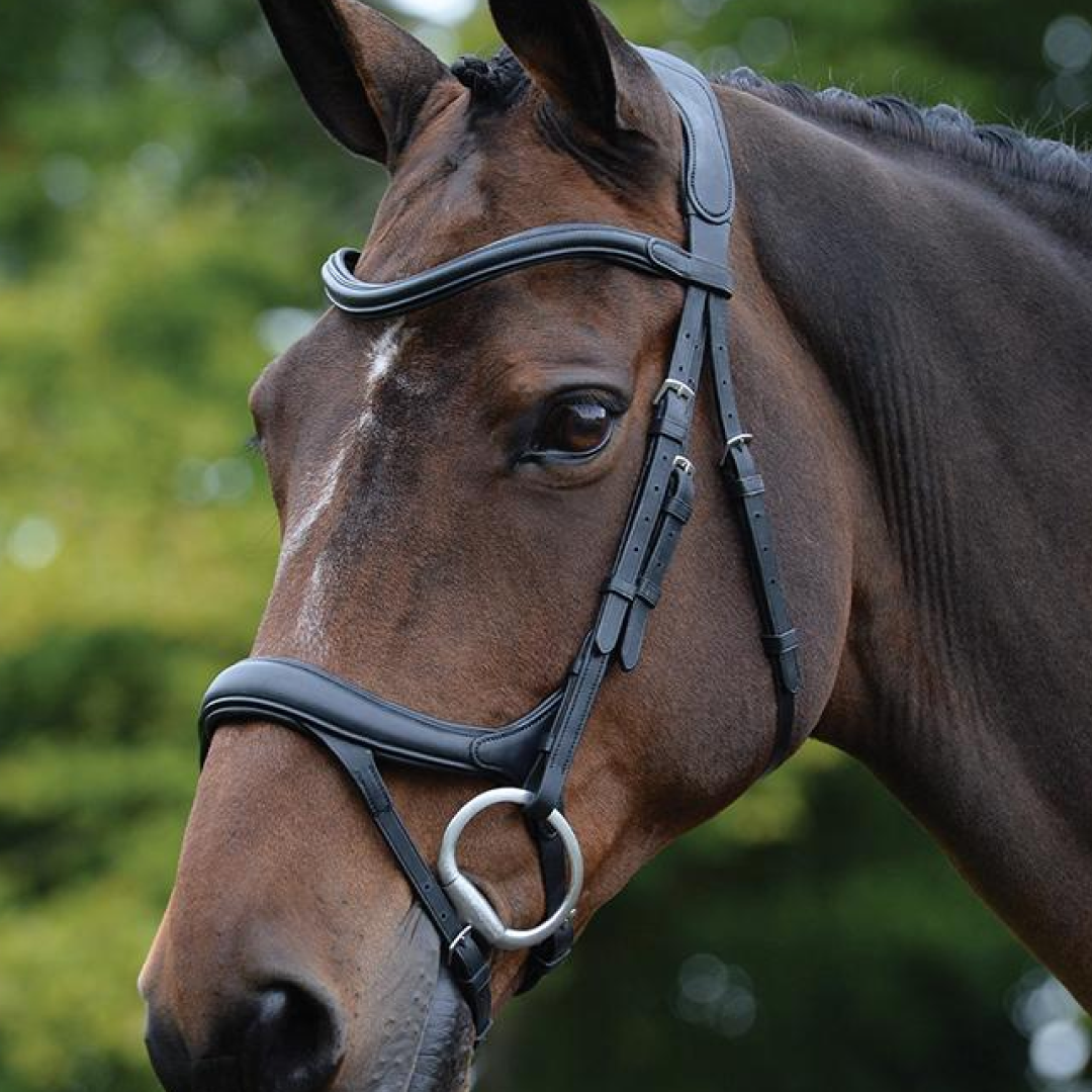 Fabriqué à partir de cuir européen de haute qualité. Ce casque anatomique est doté d'un rembourrage super doux partout et est de forme plus large entre les oreilles du cheval pour répartir la pression uniformément et confortablement et un nez incurvé qui contourne tous les principaux nerfs faciaux sensibles et offre un confort et une protection ultimes.