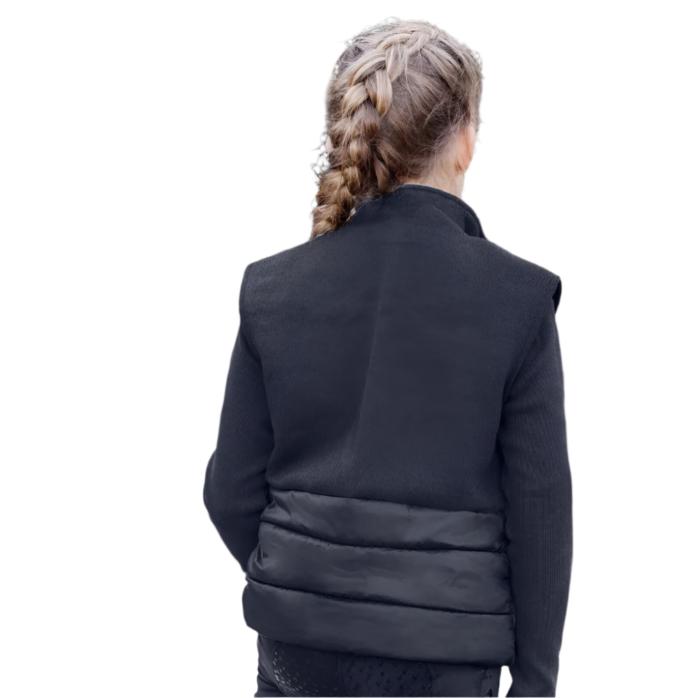 The E.L.T Children's Lucky Milu Quilted Gilet combines functionality with comfort, featuring a wind- and water-repellent design to protect young riders from the elements. Its upper front, back sections, and collar are crafted from soft fleece for warmth, while quilted material and full-length padding in the lower sections provide added insulation. Practical details include multiple pockets—chest zip pocket with silicone logo, patch breast pocket, and side welt pockets with press studs—plus a secure front placket with zipper and press studs. Finished with embroidered branding and an ELT woven label, this gilet is machine washable at 30°C for easy care.