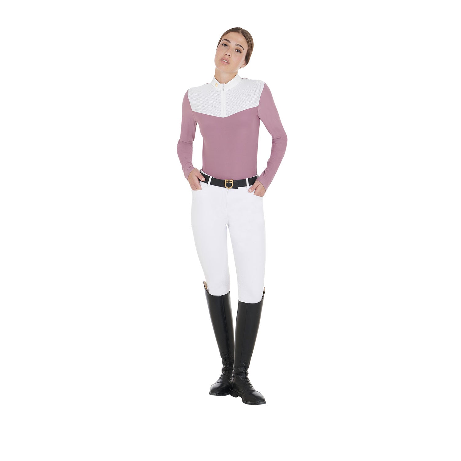 Equestro Women's Competition Polo Shirt In Technical And Mesh Fabric
