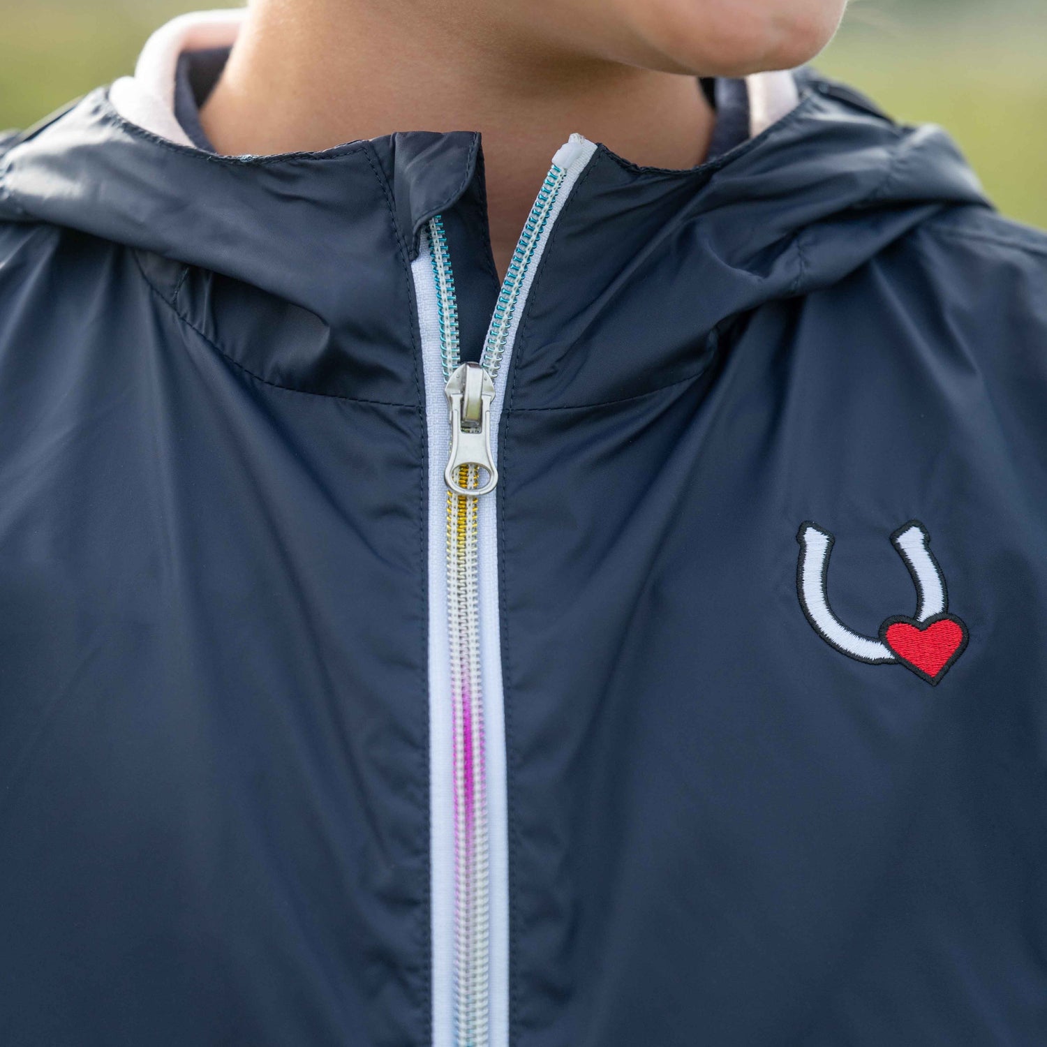 The blouson Mika combines functionality with lovely details and is the perfect companion for any weather. The rainproof and windproof material provides reliable protection from the wet and wind, while the elasticated cuffs ensure a perfect fit and a high level of comfort. Two practical front slit pockets with a zip offer space for small treasures, while the hood provides additional protection and cosiness. A special highlight is the detailed embroidery on the chest - a horseshoe with a little heart - which gives the blouson an enchanting touch. The design is rounded off with elaborate details and a stylish colour gradient on the zip. Little horse fans will always be well dressed with this blouson!