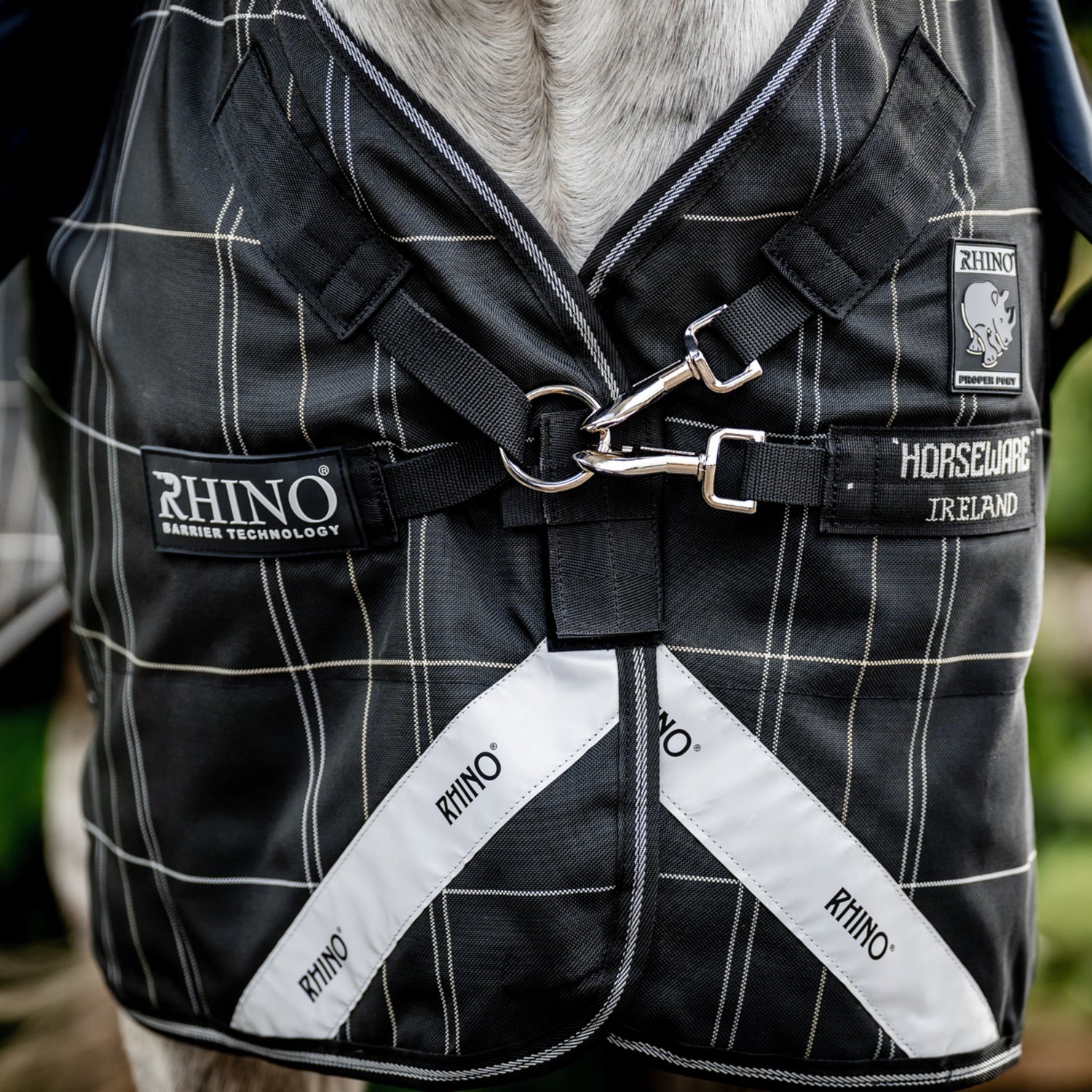 The Rhino® Plus Pony Turnout Bundle (0g Outer with 200g Liner), is everything that you love about the Rhino turnout range in a complete package. Crafted with precision and innovation, this turnout features unique Barrier Layer Technology, the outer is styled in 1000D polypropylene outer, a stronger alternative to the widely used polyester turnout material, which protects the waterproof and breathable barrier layer underneath. Designed to provide optimal waterproof protection against the elements while ensuring breathability for your horse.