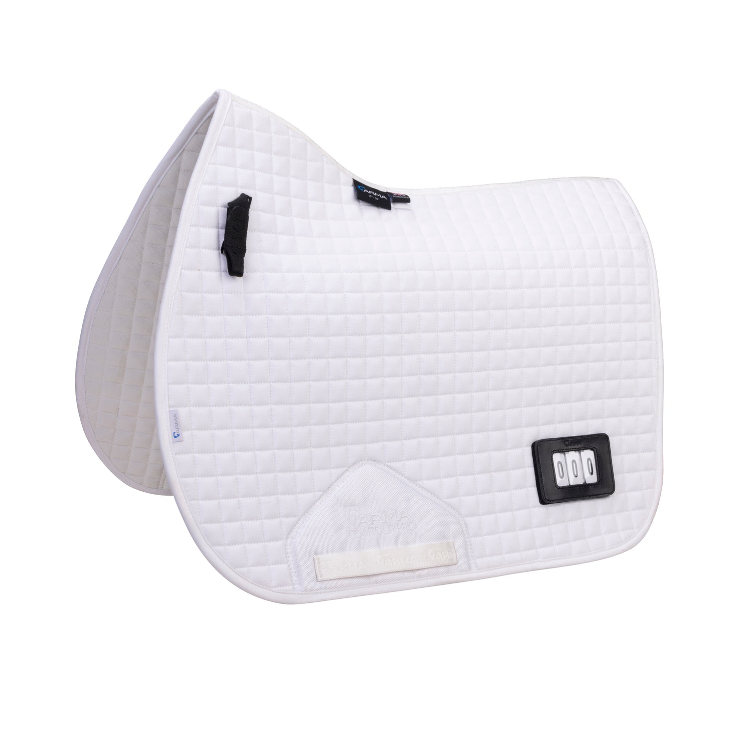 Formellement la gamme performance, le tapis de selle numéroté Shires ARMA est un excellent ajout à votre tenue de compétition. Avec des poches transparentes intégrées des deux côtés, vous offrez un moyen facile d'afficher vos numéros sans craindre qu'ils n'interfèrent avec votre punaise.