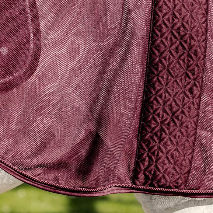 The Waldhausen Rom Excercise Rug is an elegant riding blanket made from breathable mesh with a floral insert. It features Velcro fastening for easy opening at the withers and has a tail cord for added security.