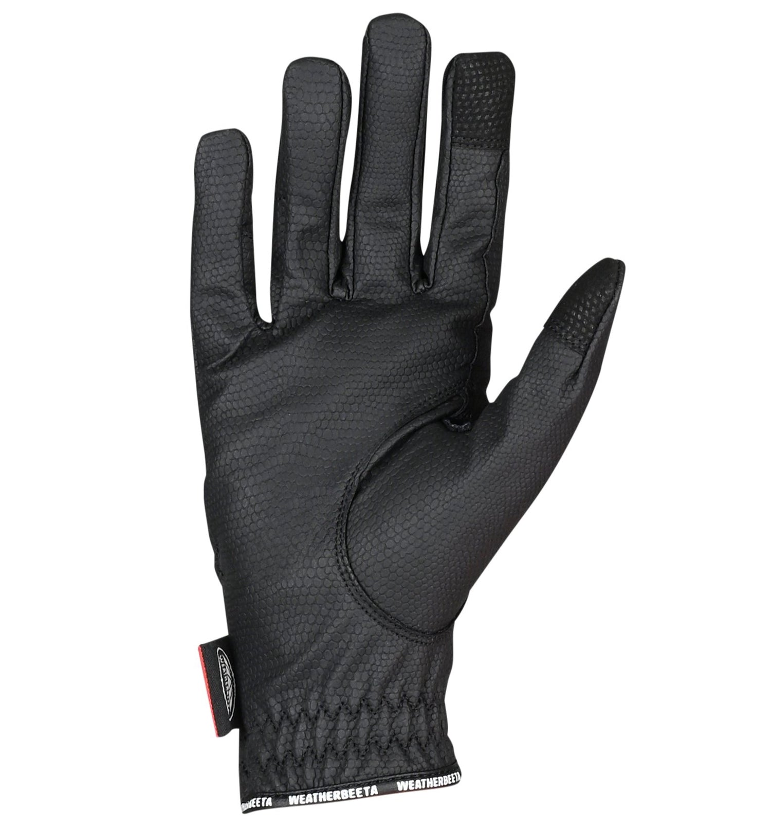 These stylish synthetic leather horse riding gloves offer a comfortable and secure grip with reinforced fingers and ultimate protection when horse riding, with elasticated gussets on the back of the hand to allow for natural movement. The Therapy-Tec lining helps to improve circulation, assisting in the relief of tension and joint pain. These gloves are touch screen compatible, so no need to remove when you need to use your phone on those chilly days! Easy to use touch tape closure on the back of the hand so there is no catching on your sleeves! Stylish WeatherBeeta branding on the tab and elasticated cuff with branded trim to offer a secure fit. These gloves come in Black making them ideal for day to day wear or at competitions, and are available in sizes XS/5 -XL/9.