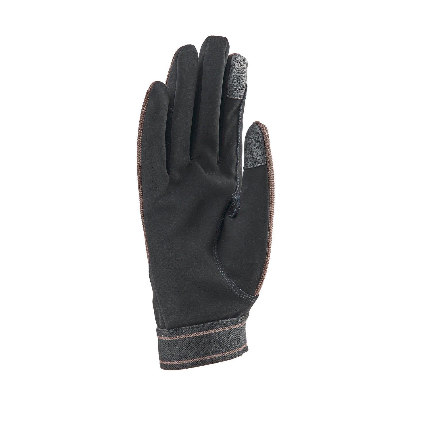 The wet or dry Synergy Grip synthetic suede palm and finger reinforcements offer reliable rein holding whatever the weather. Touchscreen compatible thumb and forefinger tips for use with smart devices. Well-shaped and stretchy with an articulated thumb for great comfort and fit. Stretch wrist with non-scratch touch close fastenings and Aubrion logo tab. White gloves do not feature touchscreen finger and thumb tips.