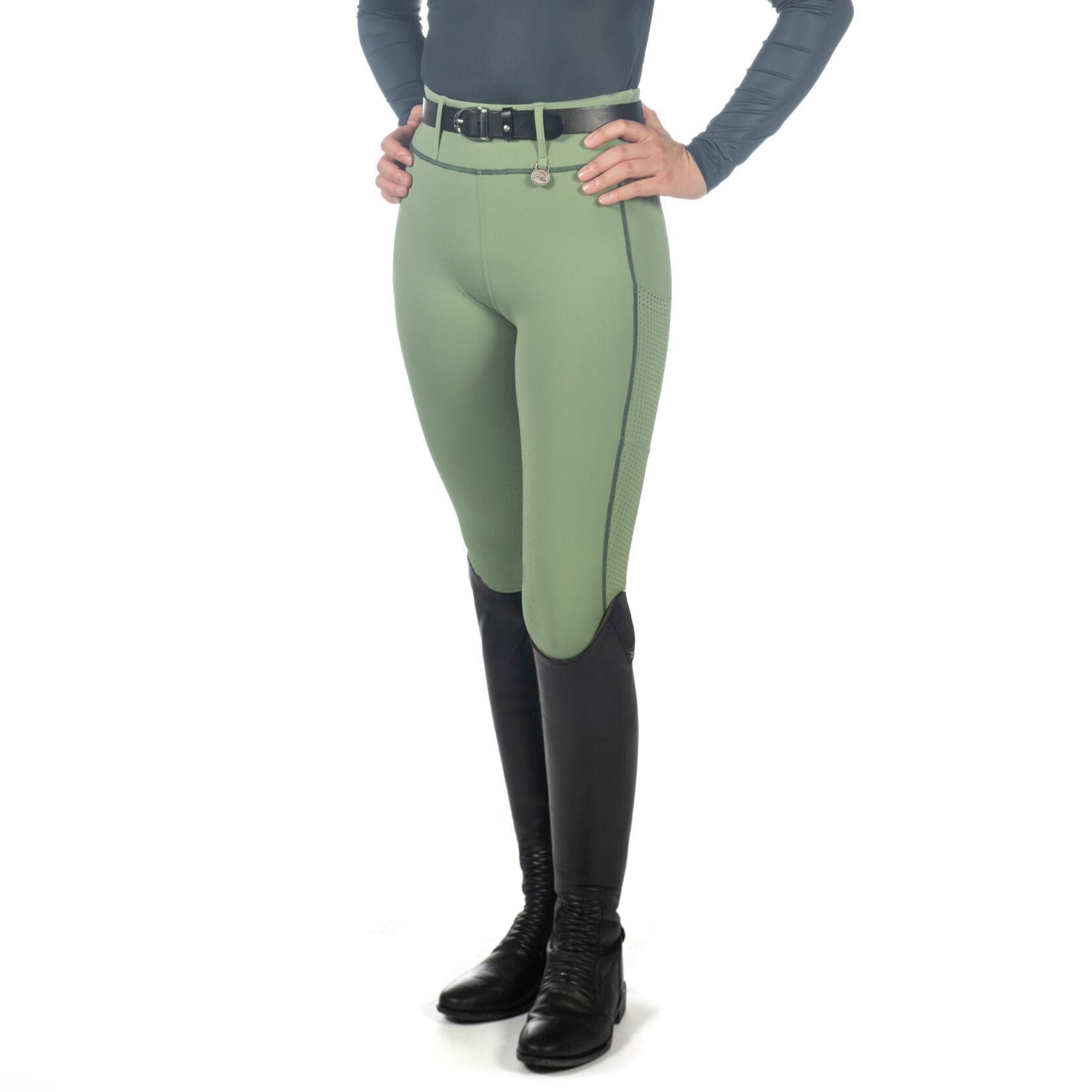HKM Ladies Silicone Full Seat Riding Tights -Juna- - Jade Green / 24" is backordered and will ship as soon as it is back in stock.