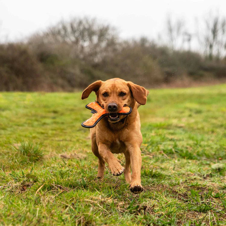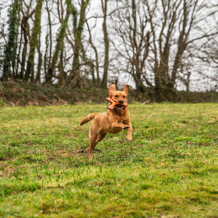 Get ready for endless fun with this extra tough Dog Throw Toy. Made from heavy-duty rubber, this durable toy is built to withstand even the most intense play sessions. Its vibrant, bright colour makes it easy to spot, whether you're playing indoors or outdoors.